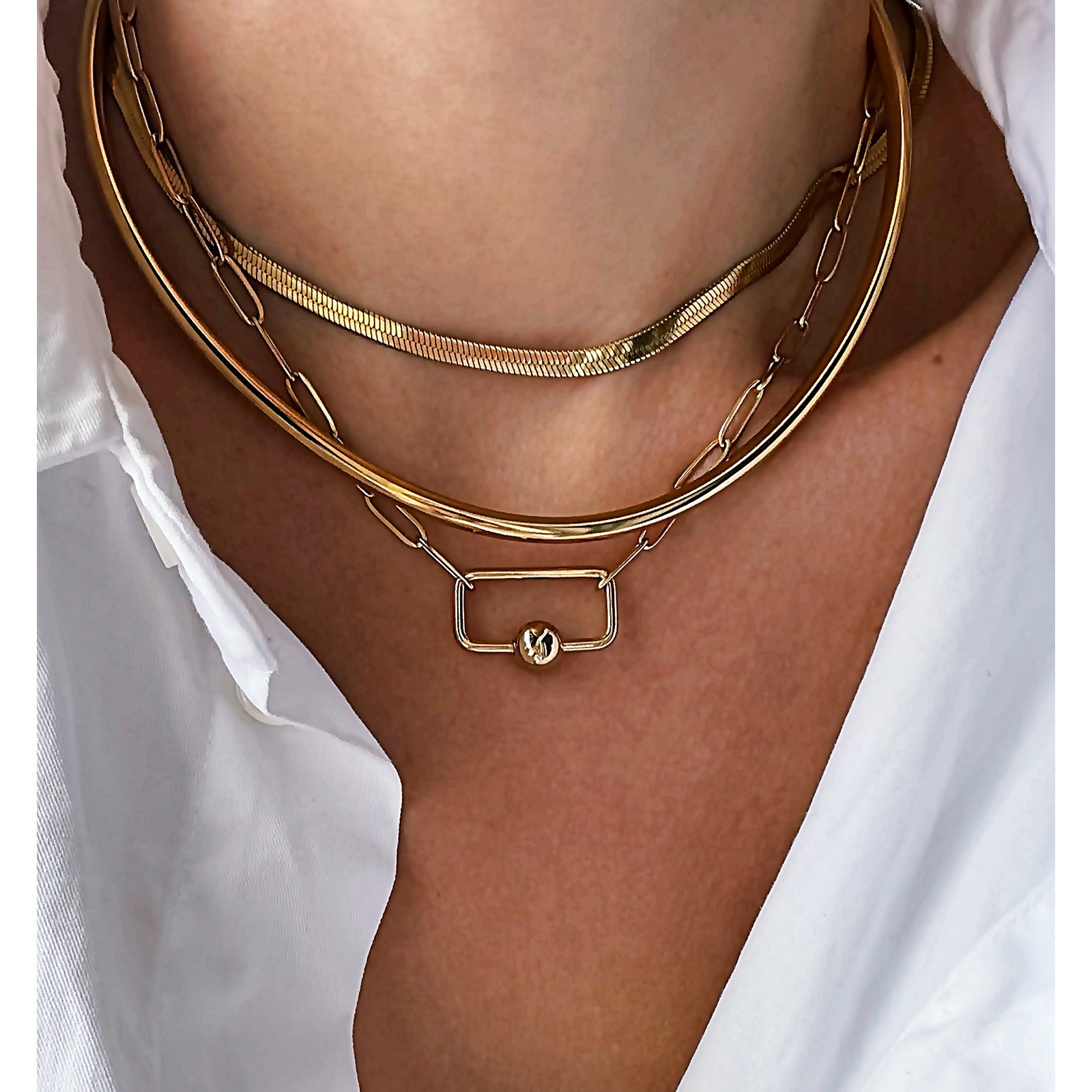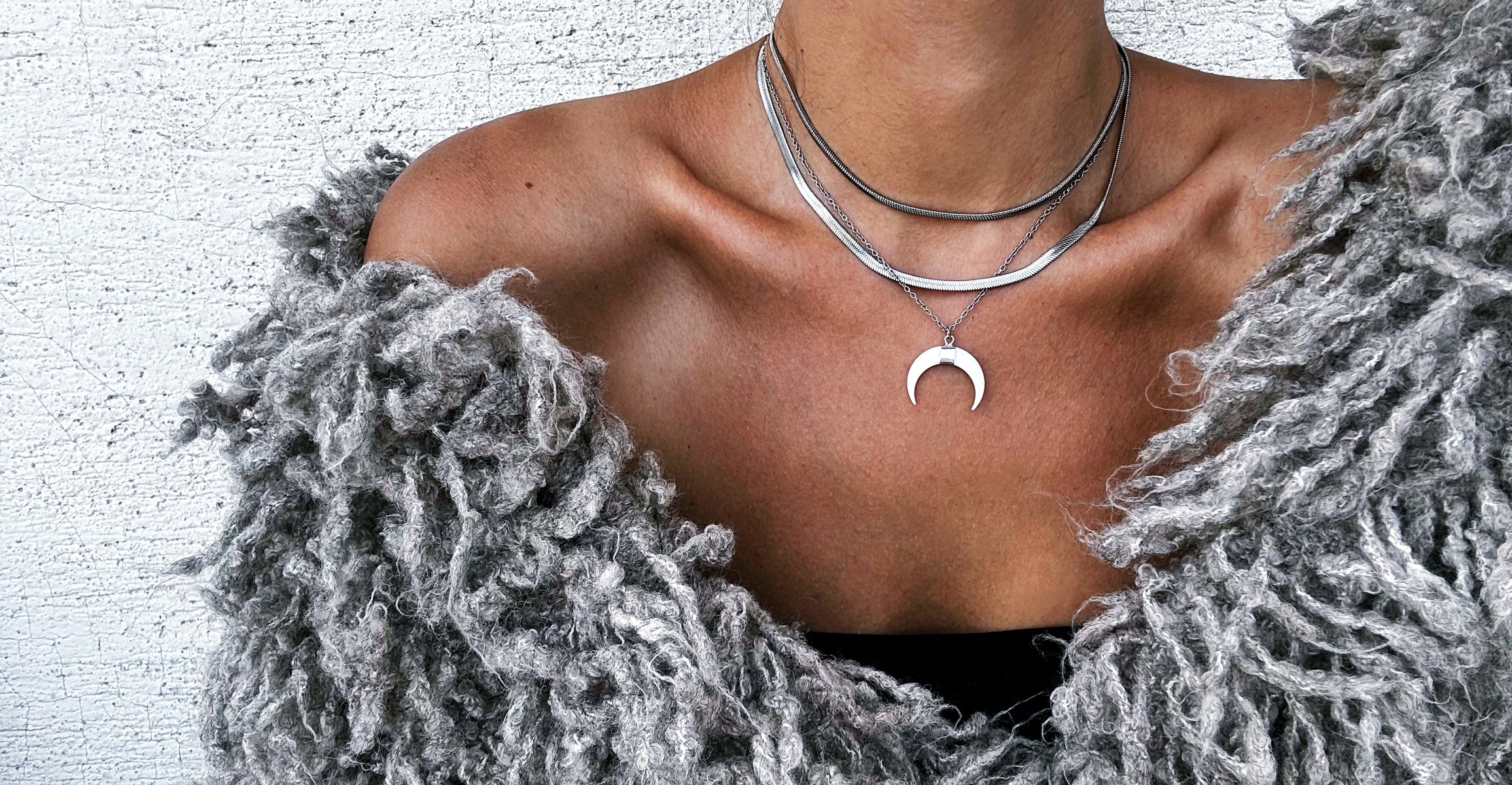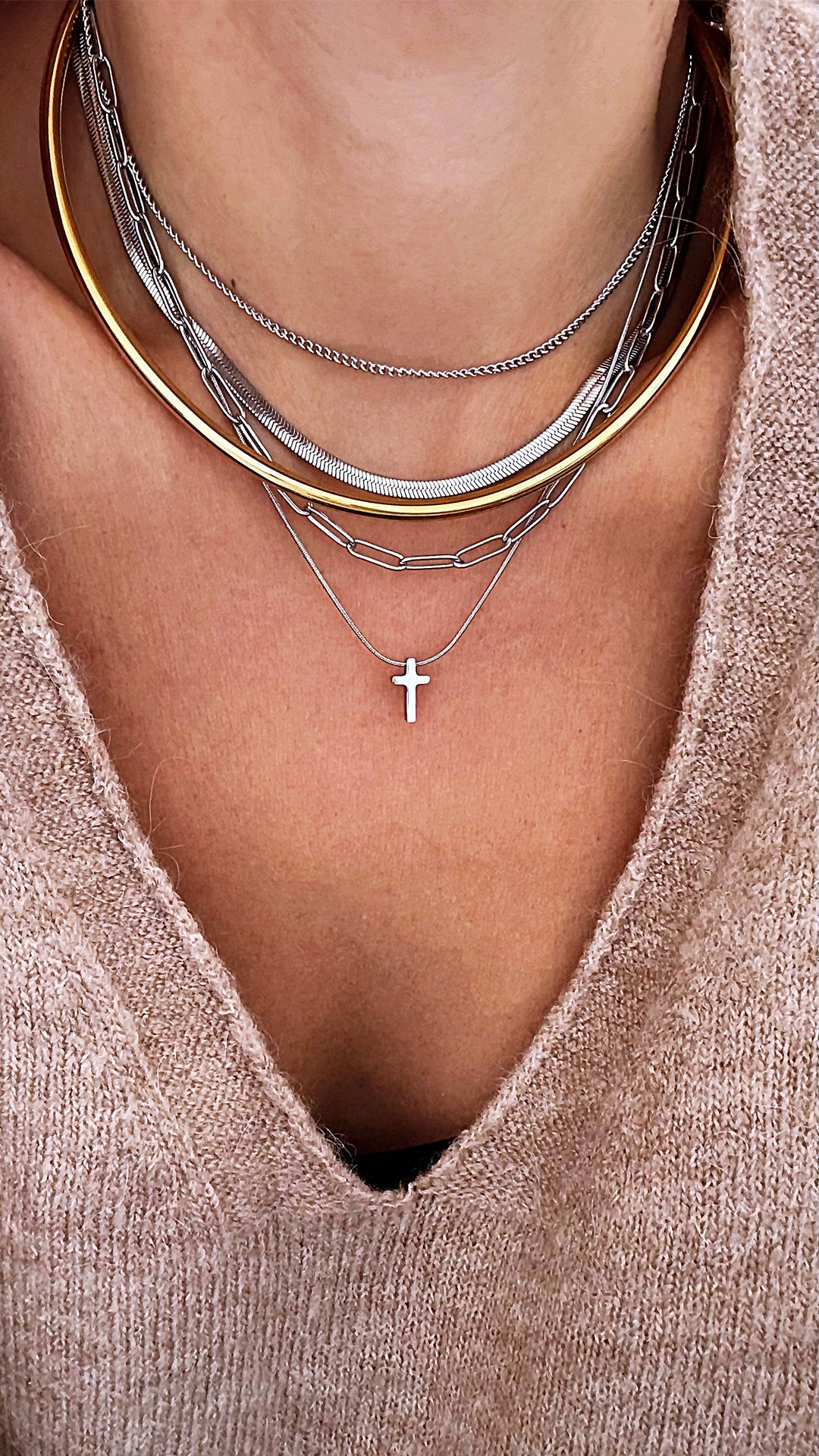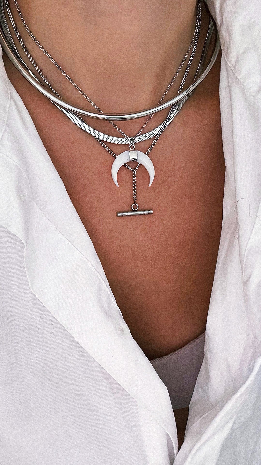 Elegantna ogrlica kragna forme, izrađena od jednog komada nerđajućeg čelika u boji srebra. Aura choker prati liniju vrata i ostavlja utisak svedenog, modernog stila uz dozu samopouzdanja.